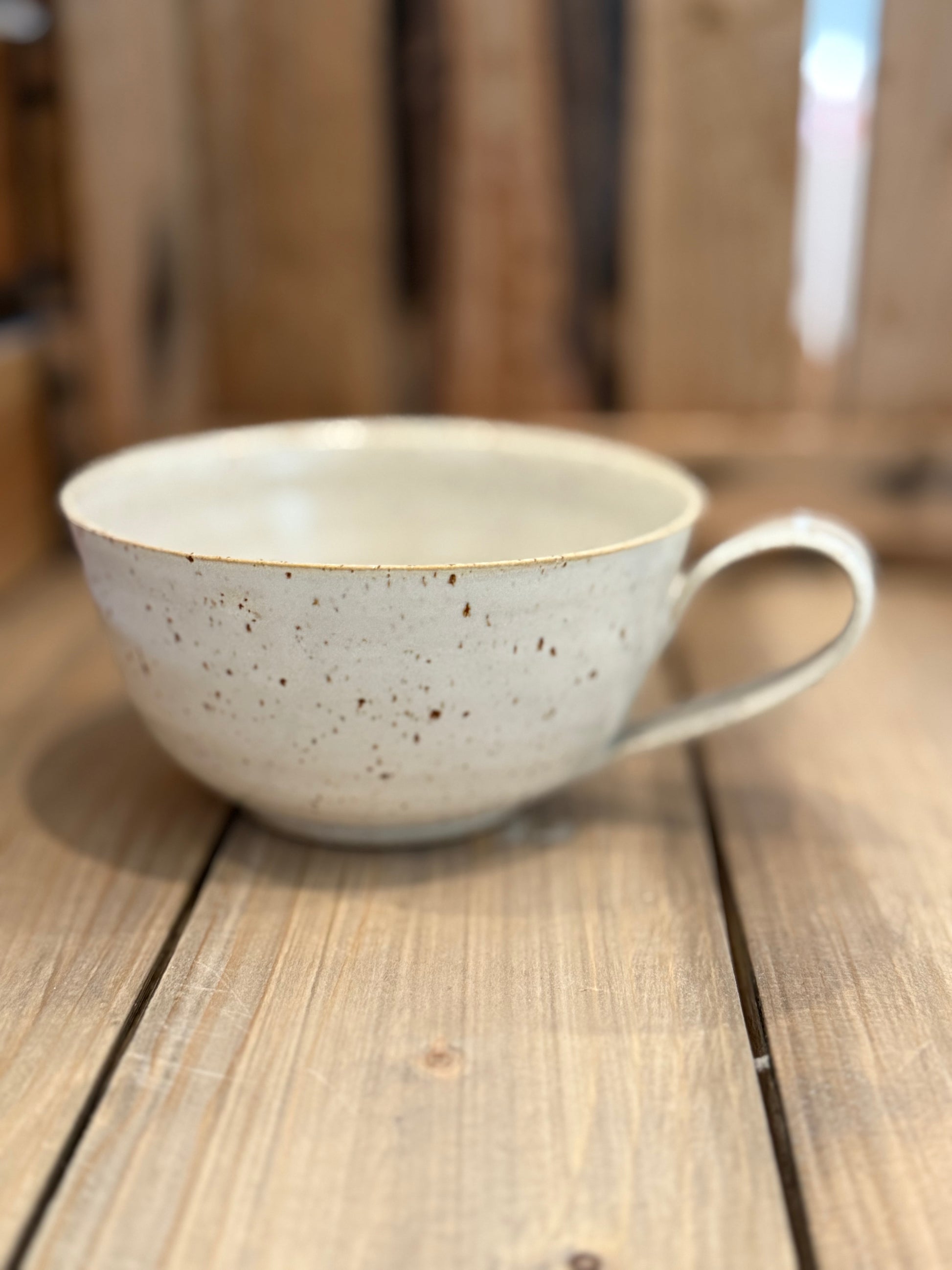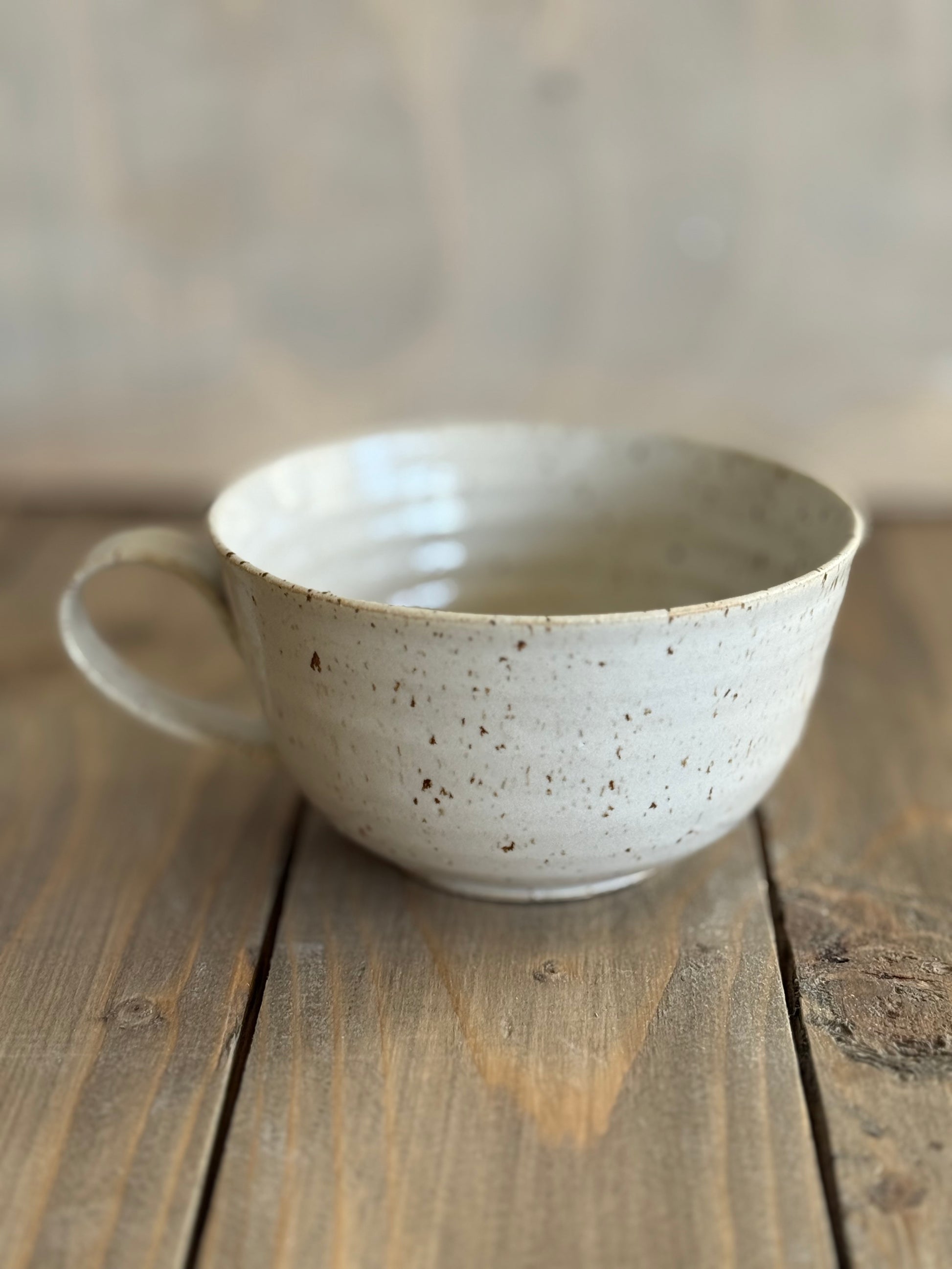 Mugg i matt glasyr. Finns i sidenmat vit och beige/havre. Ljuvlig att dricka ur och håller värmen bra enligt mina kunder