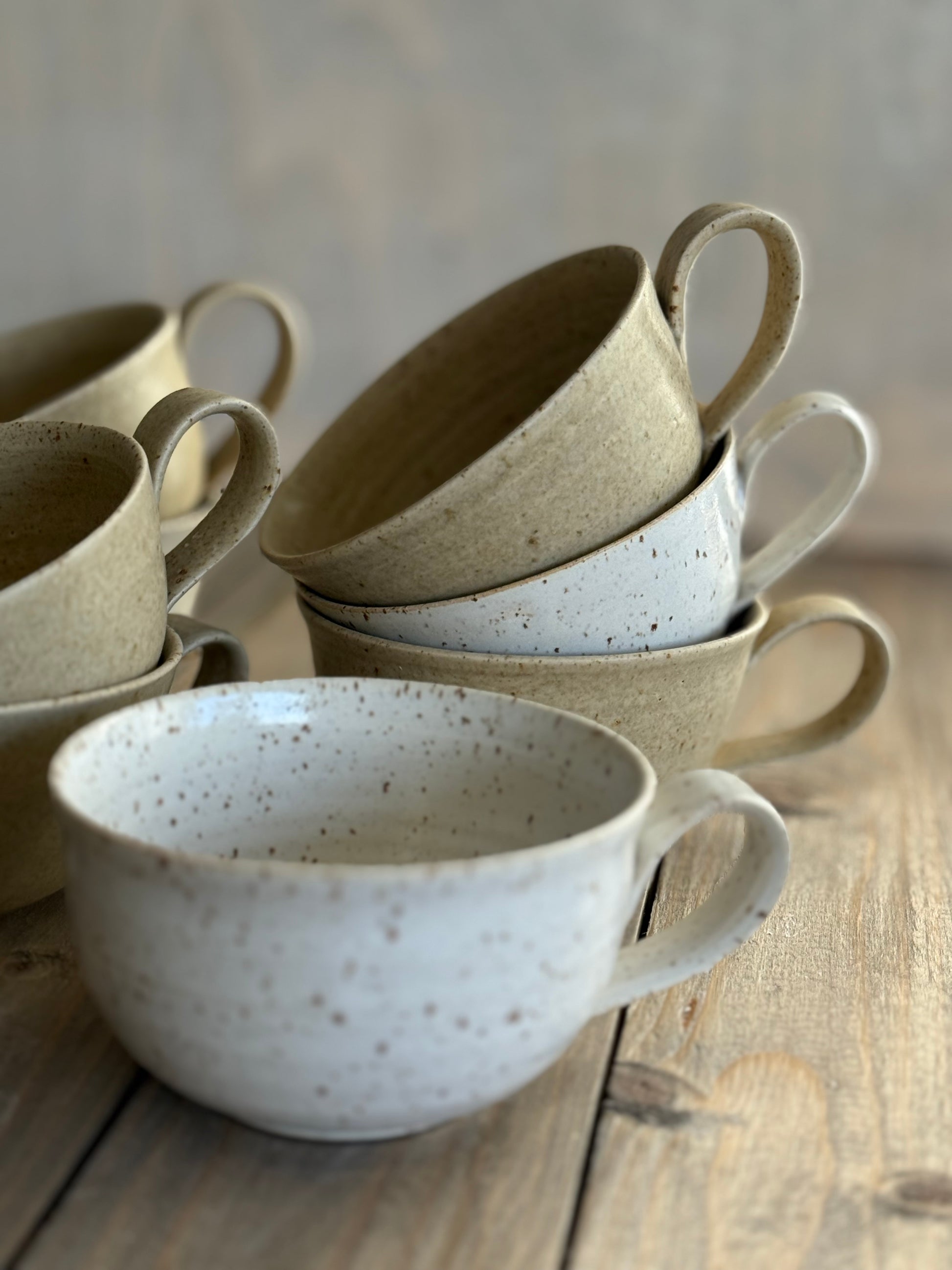 Vid låg kopp i stengods. Rymmer ca 4 dl